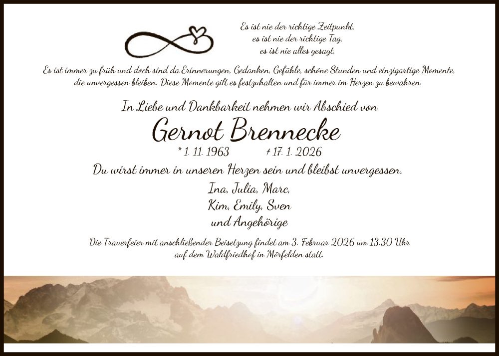Die Trauerfeier mit Beisetzung findet am
